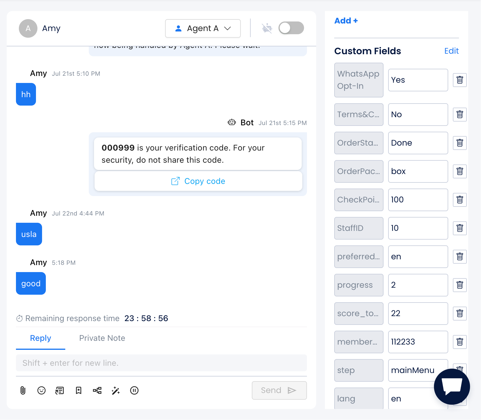 Drag and drop to customize the order in which custom fields appear on the message page, organizing information in a way that makes sense for your team.