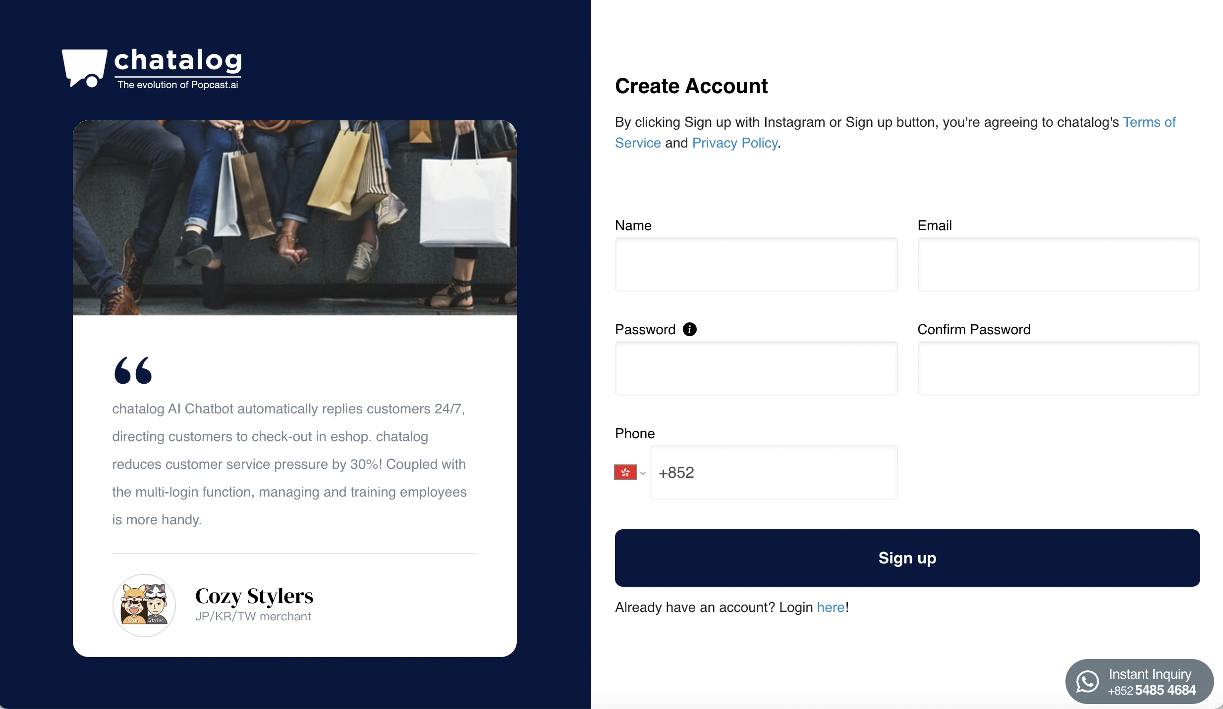 **Step 1. Register a chatalog account**