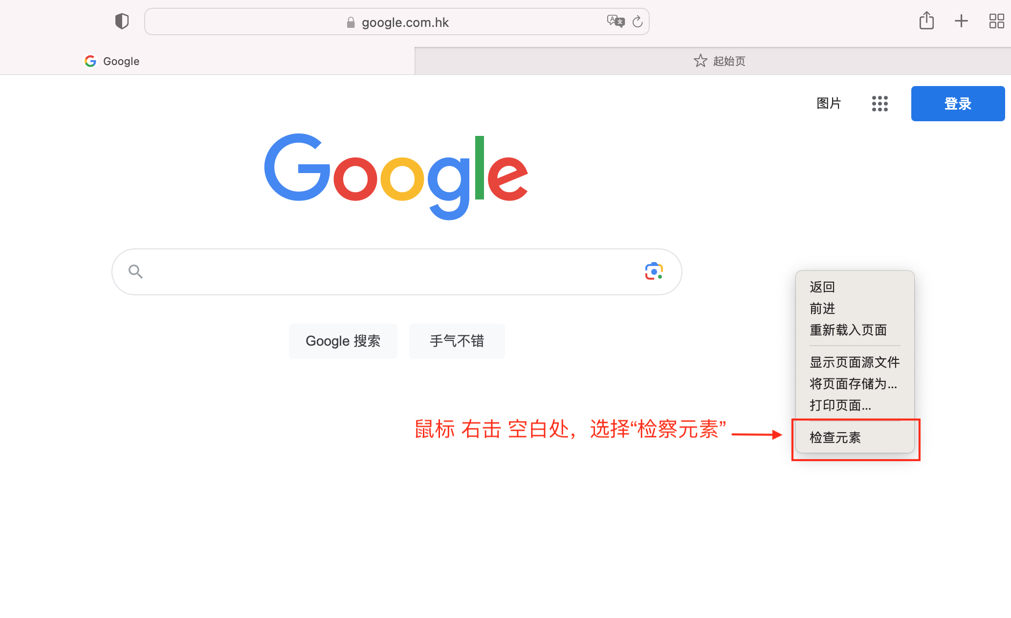 在浏览器中，右键单击并从菜单中选&#x62E9;**“检查元素”**。
