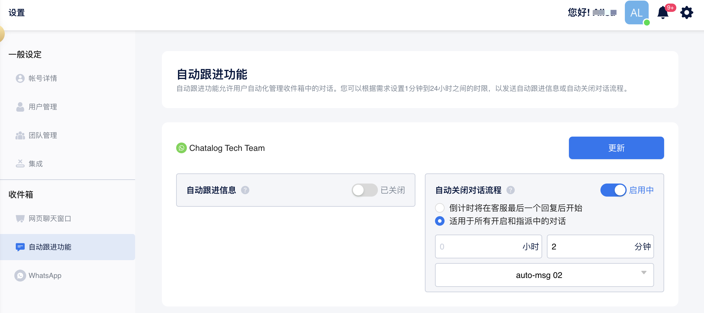 1. **自动跟进信息**可以帮助您在关闭对话前发送提醒。