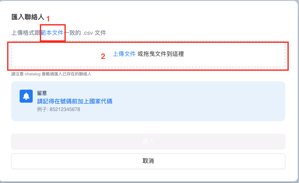 請注意，電話號碼必須包含國家代碼。 例如，如果國家代碼為 852，則號碼應為 85298765432。