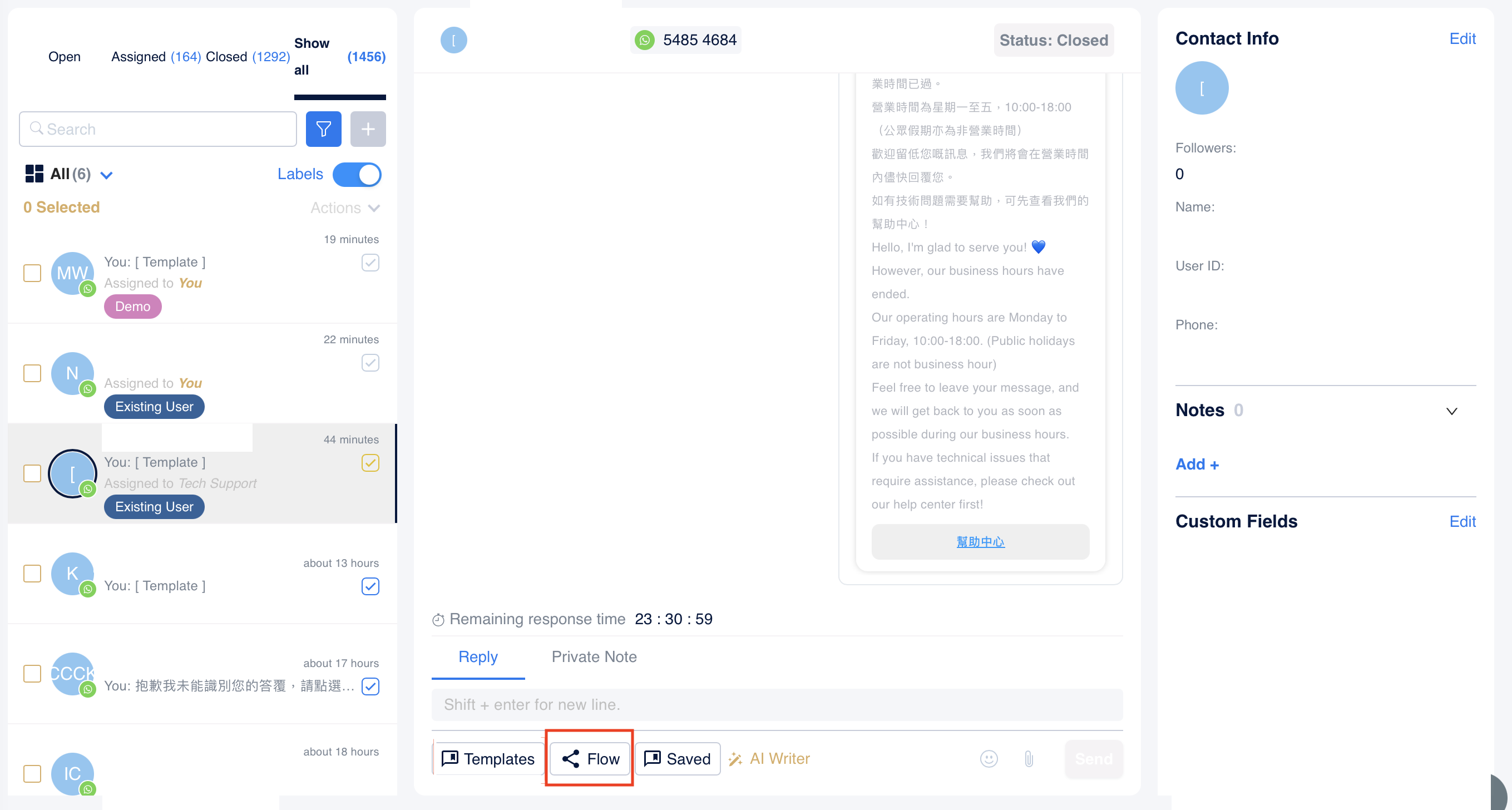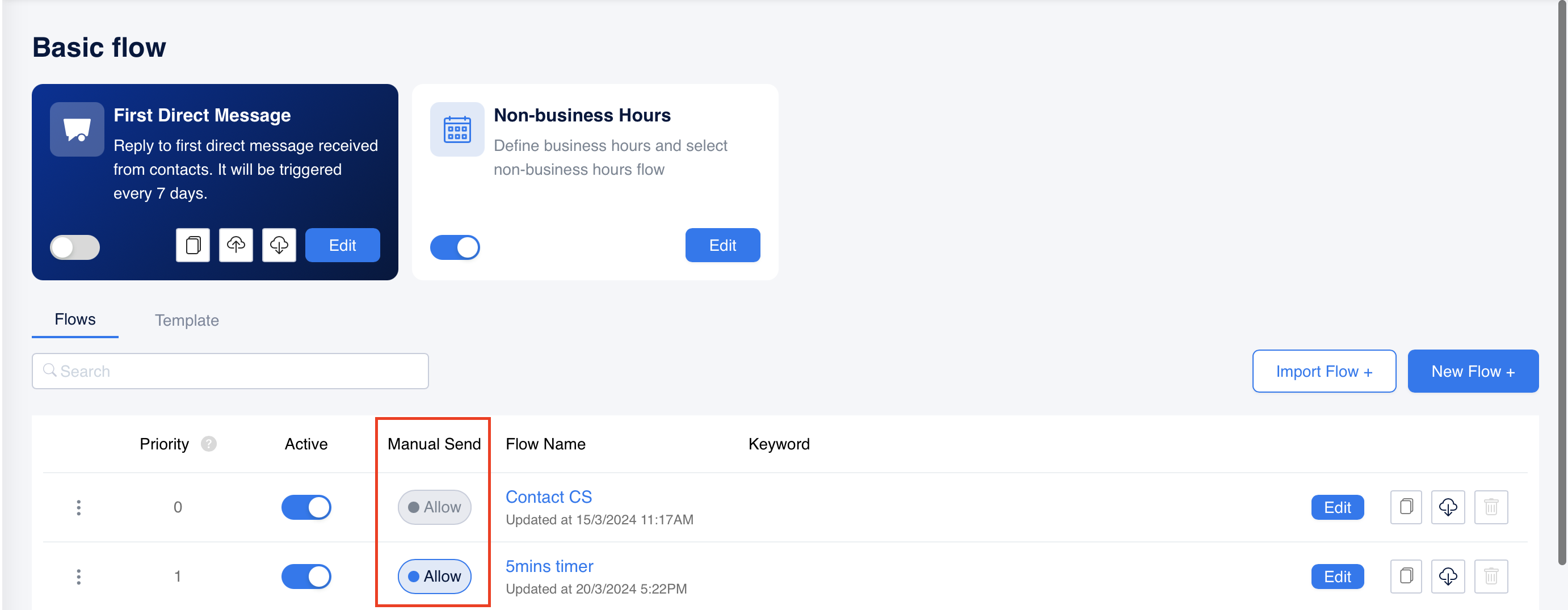 現在我們支援在訊息頁面自訂手動發送流程,方便使用者在對話過程中更輕鬆地找到並發送最常用的流程。