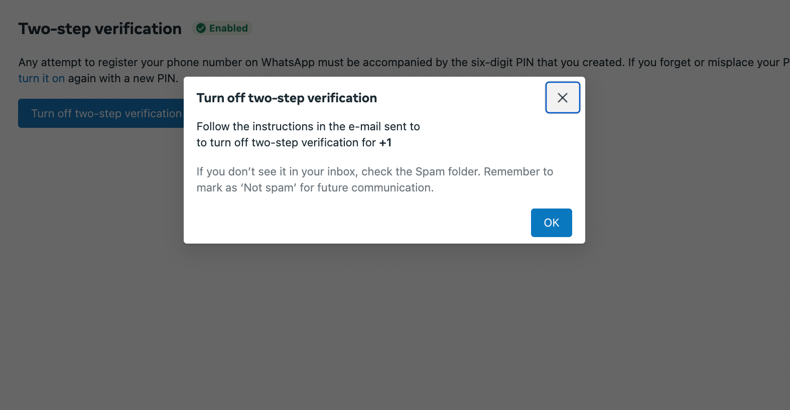 關閉 WhatsApp Manager 中的兩步驟驗證是將您的 WABA 號碼移轉到 Chatalog 的最重要步驟之一。