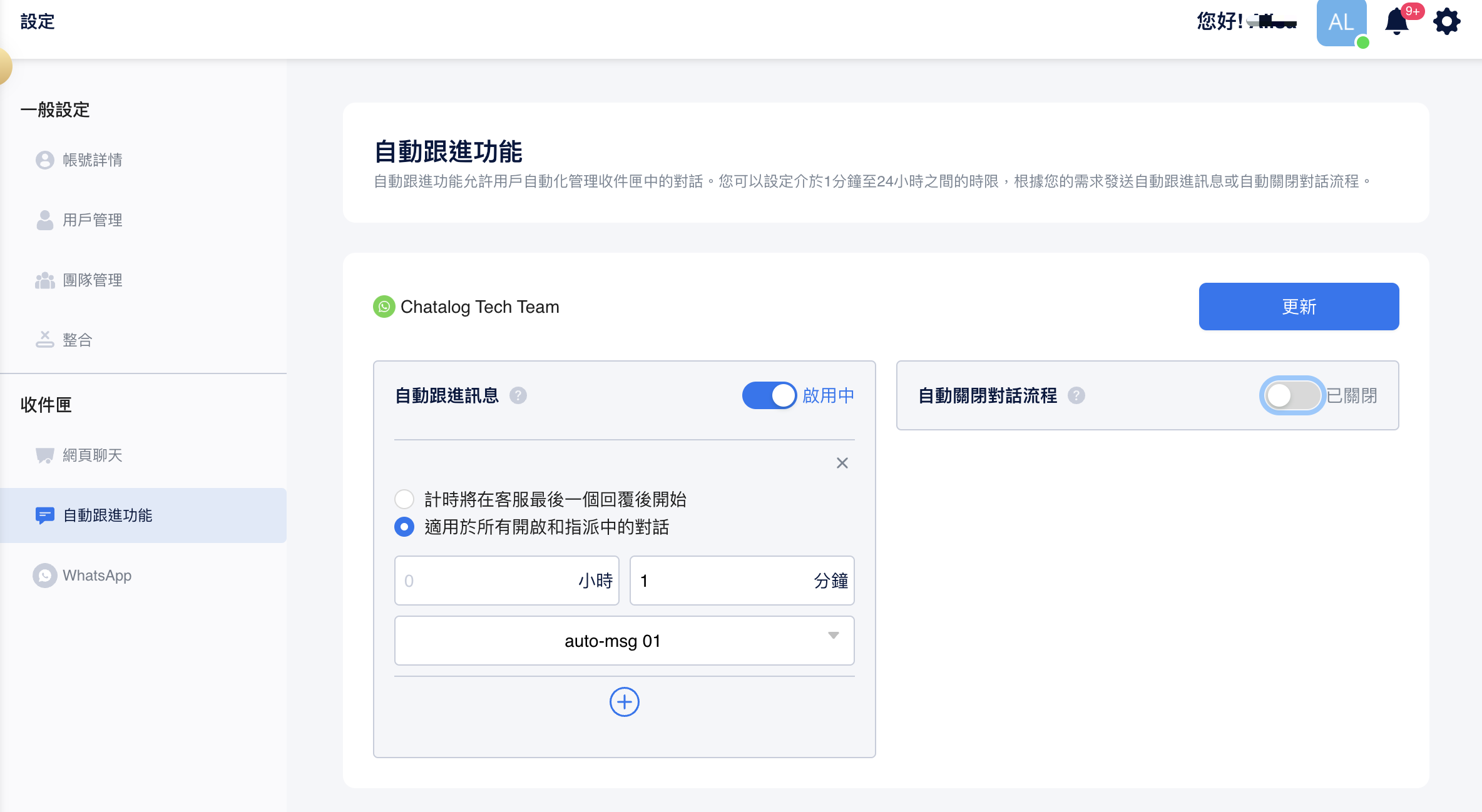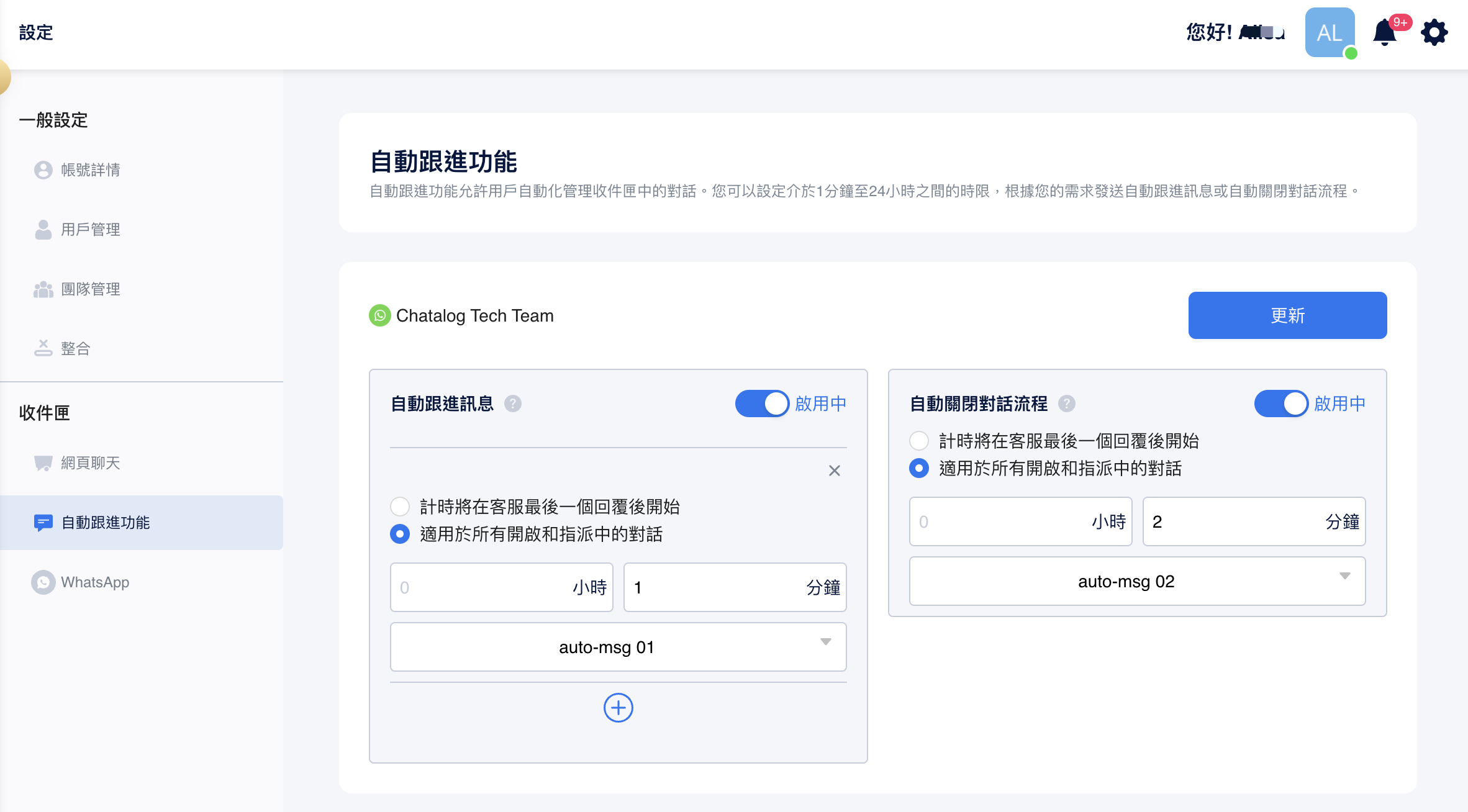 1. **自動跟進訊息**可以幫助您在關閉對話前發送提醒。